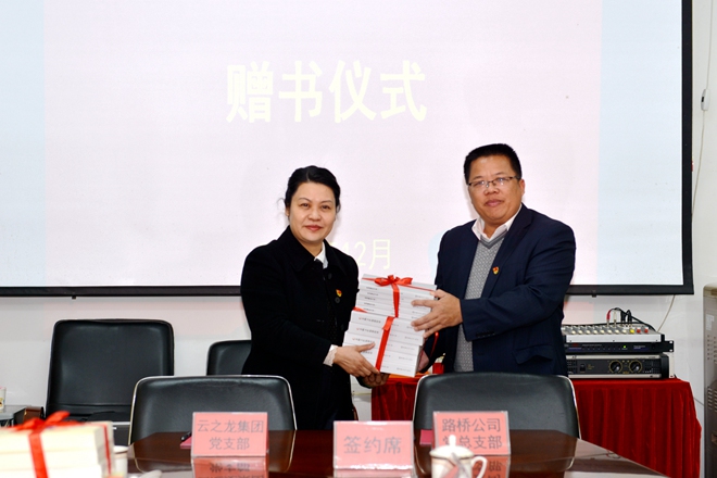 隨后,雙方互贈書籍。南寧路橋公司黨總支部給云之龍集團黨支部贈送了《中國制度面對面》《習近平談治國理政》等學習書籍;云之龍集團黨支部將行業書籍《亞利聊政采》贈送給南寧路橋公司黨總支部。