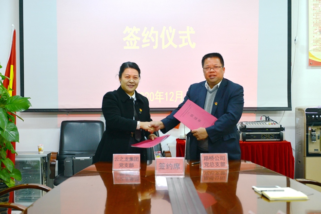 為提高黨建工作水平,向優秀黨組織靠攏,2020年12月31日,云之龍集團黨支部與南寧路橋公司黨總支部開展黨組織共建座談會并簽訂了共建合作協議。通過此次合作,探索和構建起雙方黨組織互聯互動、互促共進、共促發展的黨建一體化工作格局,以高質量黨建促進各項工作穩步發展。