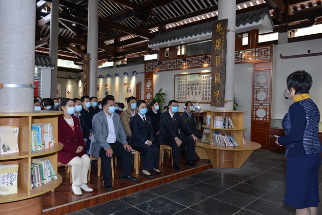 家風館位于明倫堂中,館內陳列著孔子、陸績等古代圣賢和革命先烈的傳世家風。黨員同志重溫毛澤東、周恩來等老一輩無產階級革命家以德傳家、以儉持家、以嚴治家的崇高風范;學習國家領導人習近平的優良家風故事。全體黨員沉浸在廉潔修身、見賢思齊的學習氛圍中,不斷校正自身品行。