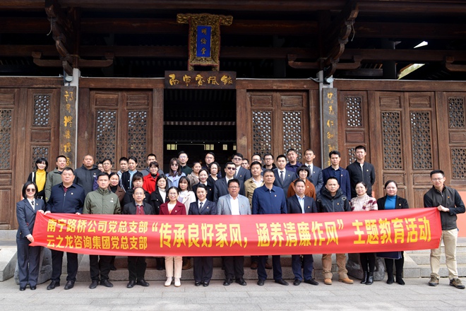 為深入學習貫徹習近平總書記關于注重家庭家教家風建設重要論述,進一步引導黨員同志正己風、嚴家風、樹清風,2021年11月24日,云之龍咨詢集團黨總支部與南寧路橋公司黨總支部黨員來到南寧孔廟家風館,共同開展“廉潔家風”主題黨日活動,讓黨員同志通過學習百年黨史和優秀家風文化,樹立起嚴以修身、清正廉潔的“齊家”風范。