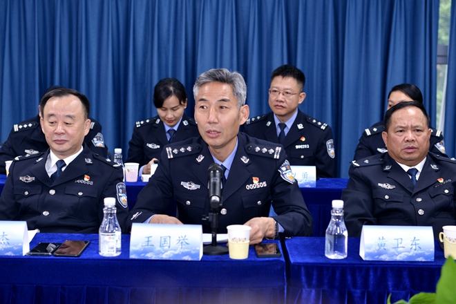 廣西公安廳警務(wù)保障部副主任兼裝備處處長(zhǎng)王國(guó)舉向大家介紹了公安廳警務(wù)保障部黨總支部在建黨百年中的維穩(wěn)工作成效,以及在黨史學(xué)習(xí)教育、隊(duì)伍教育整頓工作等方面取得的成績(jī)。他指出,聯(lián)學(xué)聯(lián)建活動(dòng)意義重大,是貫徹落實(shí)習(xí)近平總書記“七一”重要講話精神的有益嘗試,是鞏固深化開展黨史學(xué)習(xí)教育活動(dòng)的重要契機(jī)。我們要以聯(lián)學(xué)聯(lián)建作為加強(qiáng)交流學(xué)習(xí)的重要平臺(tái),高水平推進(jìn)黨建工作和業(yè)務(wù)工作深度融合。
