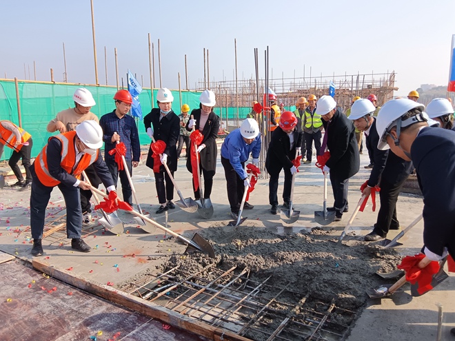 2023年1月6日,梧州市紅十字會醫院蒼海醫院建設工程門診樓迎來封頂。