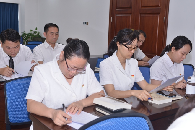 會上,全體黨員在蒙舒蕓委員的帶領下,集體學習《習近平新時代中國特色社會主義思想專題摘編》。