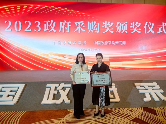 會議對在2023年度政府采購實踐中涌現(xiàn)出的先進集體和優(yōu)秀個人進行頒獎,云之龍咨詢集團名列其中,再次獲得由中國政府采購報、中國政府采購新聞網(wǎng)頒發(fā)的優(yōu)秀咨詢機構(gòu)獎,這是云之龍連續(xù)第五年榮獲該獎項。