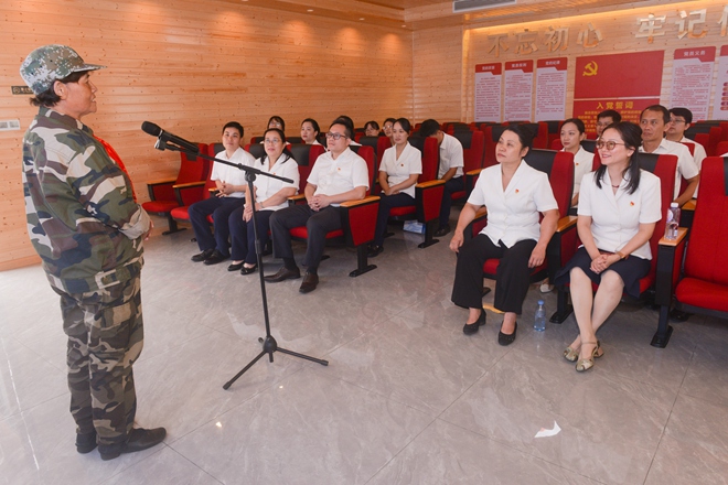 在林景云故居紅色文化傳承課堂上,林景云烈士的后人林寶霞以良慶鄉缸瓦窯村成為時局信息交匯地為引線,通過南寧兵變、龍州起義和五塊銀元的故事,向大家慷慨激昂的講述了林景云烈士投筆從戎、舍生忘死的英雄事跡。她聲情并茂的演講,讓全體參觀黨員都沉浸到那段團結抗戰、熱血報國的紅色歲月,為英雄們的崇高信仰感動得熱淚盈眶。