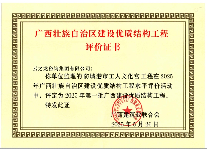 匠心鑄就品質標桿!云之龍全過程工程咨詢項目榮獲“廣西建設優質結構工程”獎