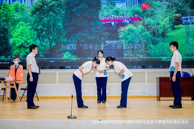 比賽中,云之龍柳州分公司參賽團(tuán)隊圍繞評審流程模擬、突發(fā)事件應(yīng)對、電子招標(biāo)操作等關(guān)鍵環(huán)節(jié),展現(xiàn)出扎實的專業(yè)功底和良好的臨場應(yīng)變能力。在風(fēng)采展示環(huán)節(jié),團(tuán)隊創(chuàng)新演繹企業(yè)歌曲《奮斗者之歌》手語舞,以整齊的動作和飽滿的精神面貌,生動詮釋了云之龍人的專業(yè)形象與企業(yè)文化,贏得了評委和觀眾的廣泛好評。