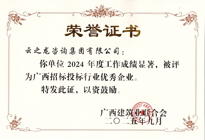 “廣西招標投標行業優秀企業”由廣西建筑業聯合會組織評選