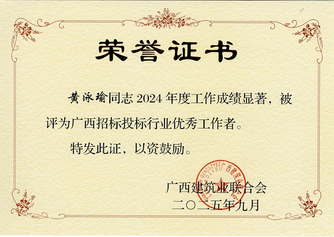 “廣西招標投標行業優秀工作者”