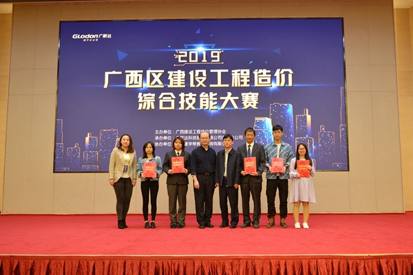 游振宇(右三)、黃玲(左三)獲“2019年度廣西區工程造價優秀技術標兵”稱號
